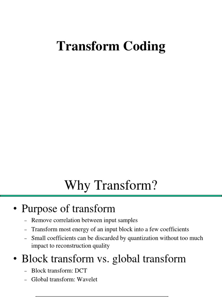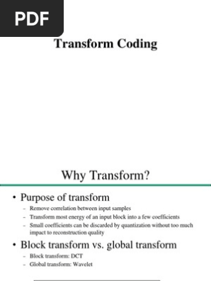 Transform coding is a frequency-domain approach like sub-band coding SBC. Handbook of Image and Video Processing Second Edition 2005. EE368b Image and Video Compression Transform Coding no.