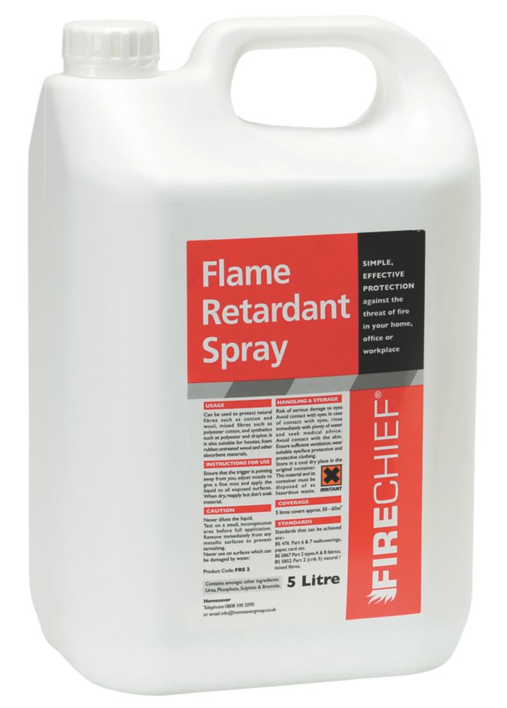 Flame retardant spray for fabric. Produced In An ISO 9001 Quality Assured environment to exacting standards. Eliminate or dramatically reduce the spread of flame in a single coat with this do-it-yourself fabric fire retardant spray. Possibly more on light weight materials.