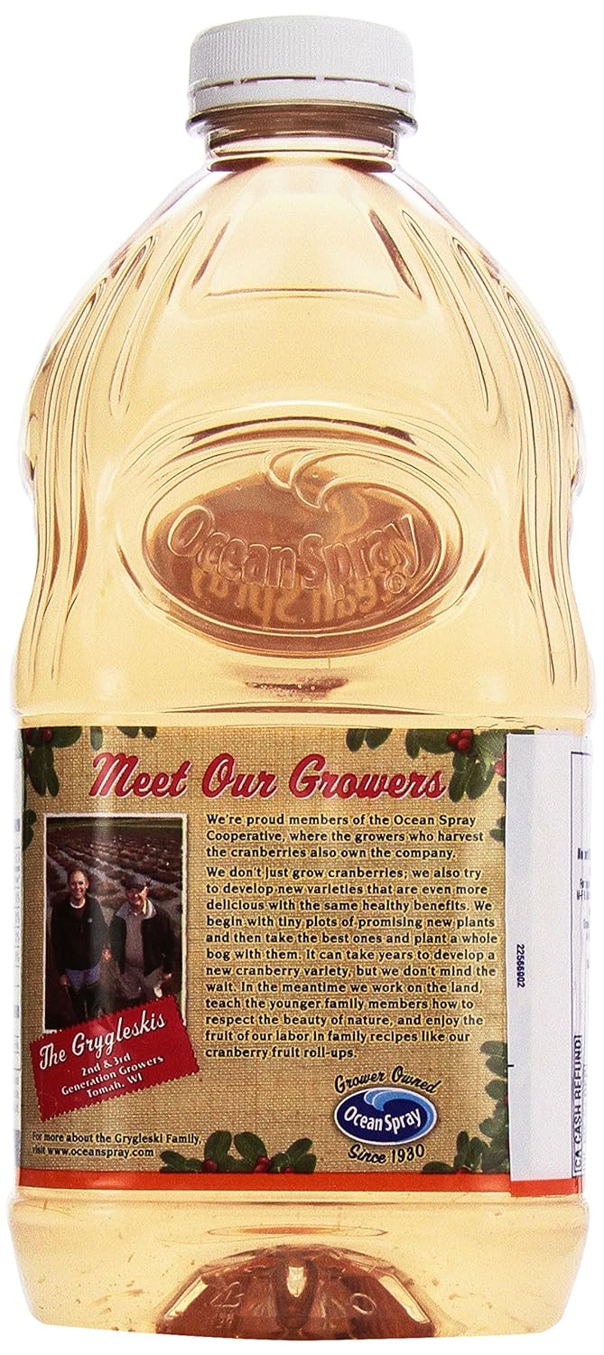 1 64-ounce bottle Ocean Spray White Cranberry and Peach Juice Drink chilled. White cranberry and peach juice drink blended with another juice from concentrate.